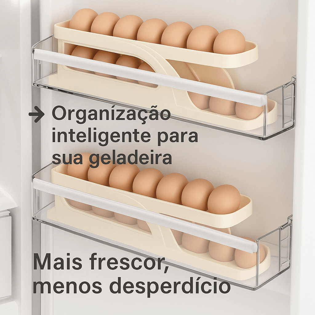 Mantenha seus ovos sempre frescos, organizados e fáceis de acessar! Com design inteligente de rolagem automática, o Porta Ovos garante praticidade, economia de espaço e mais eficiência no seu dia a dia.